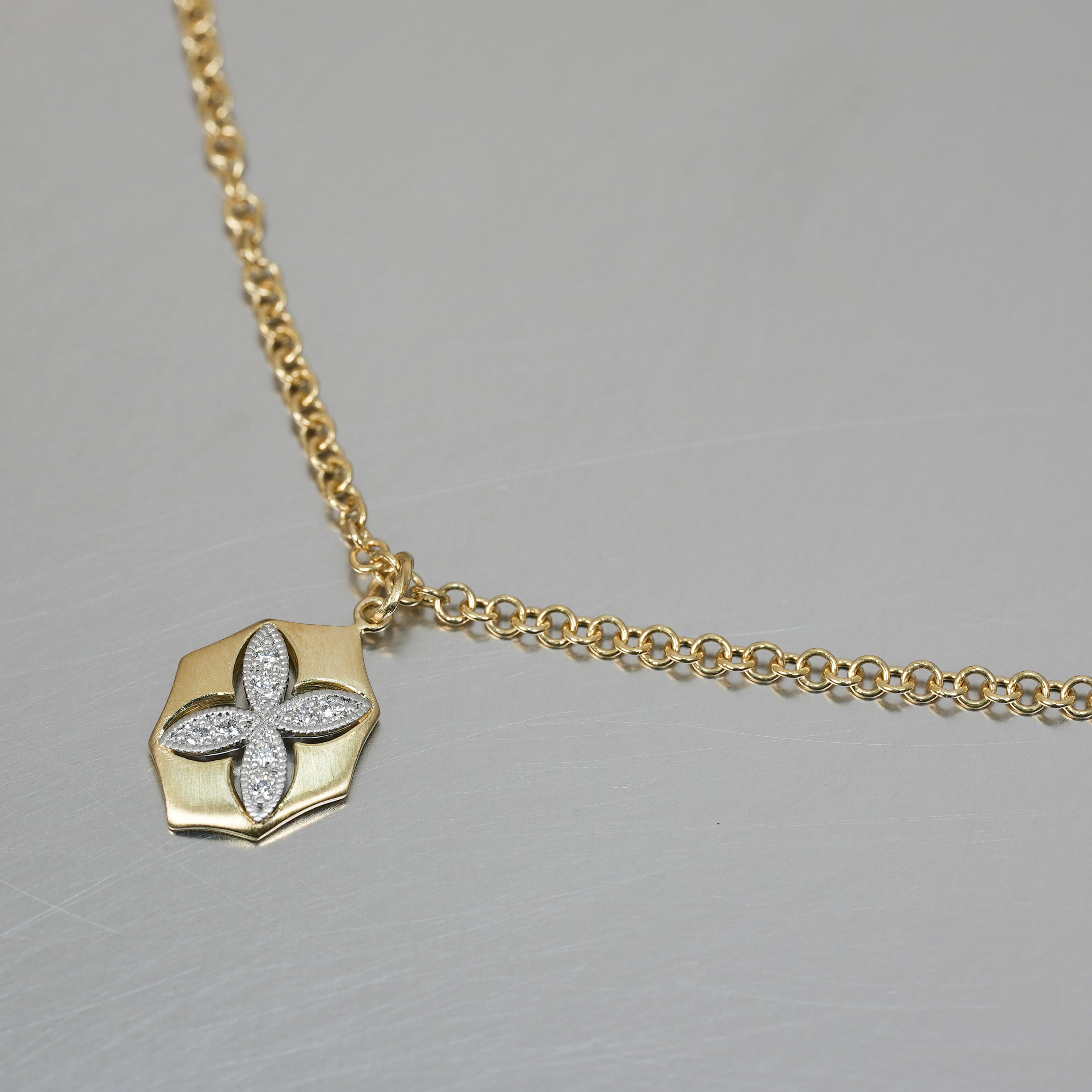 フレームとモチーフ、1点1点丁寧にすり合わせたその隙間が、2色のコントラストを最大限に引き立てています。