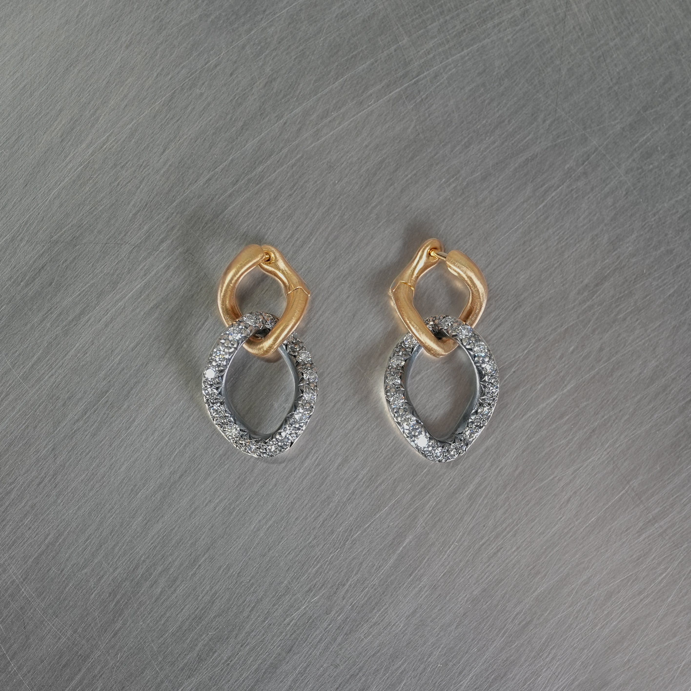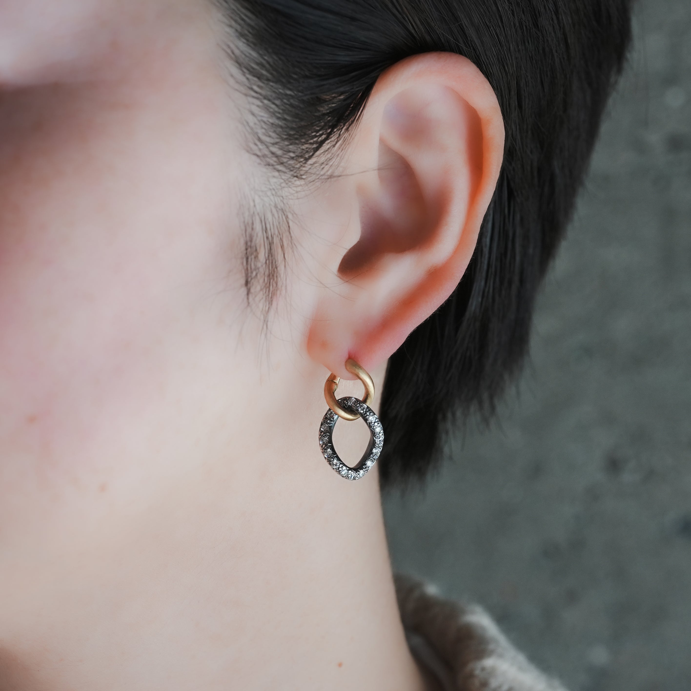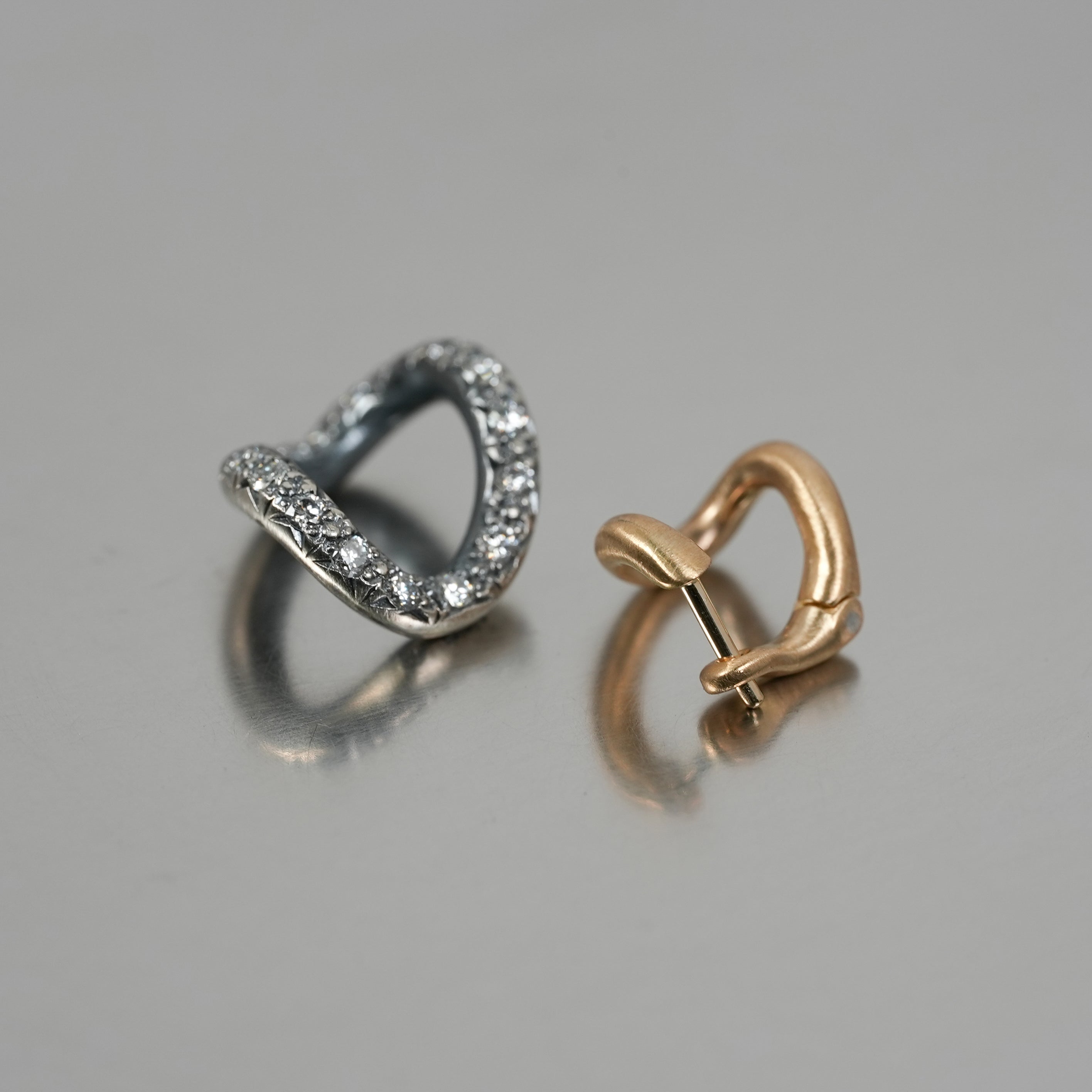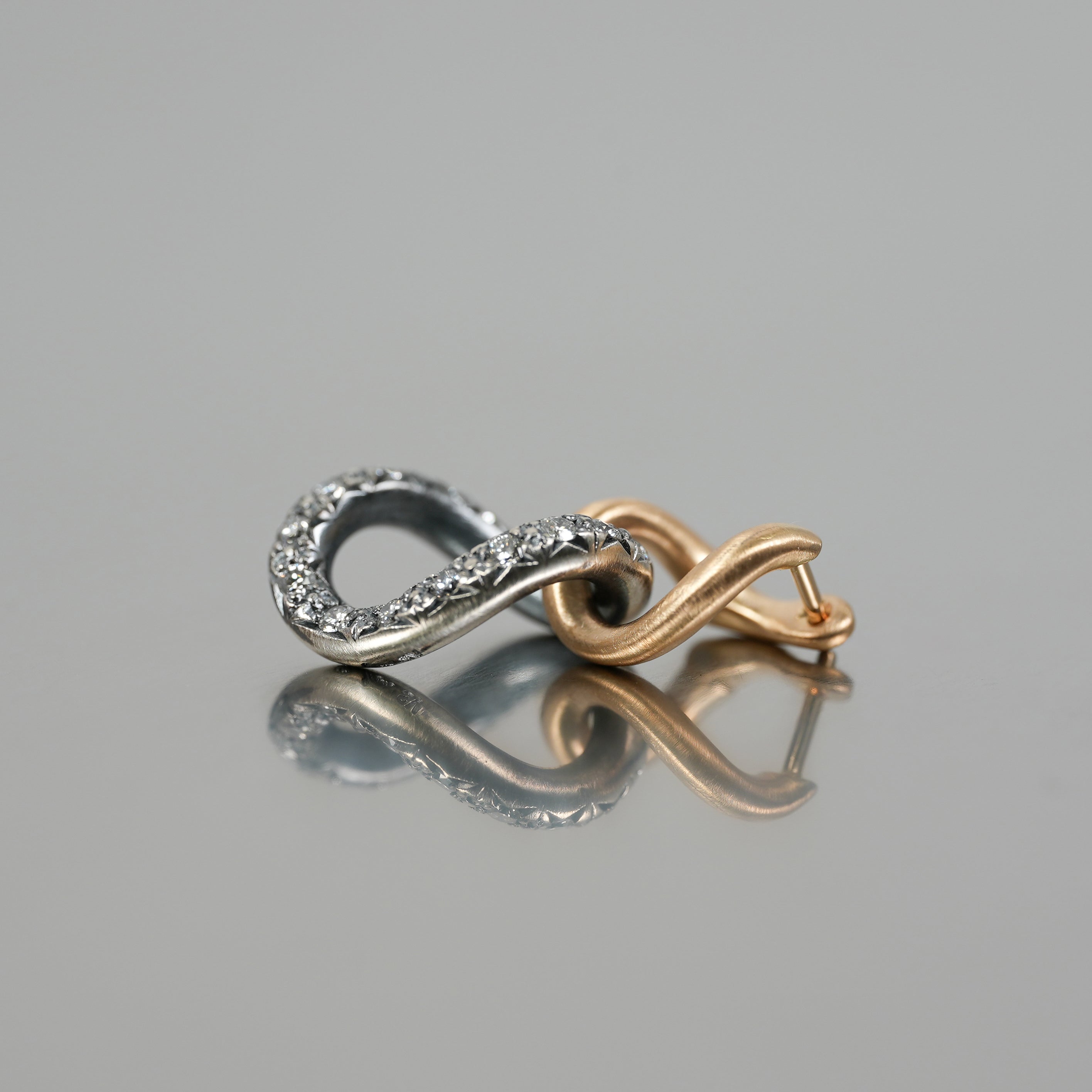 チェーンのモチーフにシルバーとゴールドとダイヤモンドの異素材コンビネーションがhumらしいデザイン。